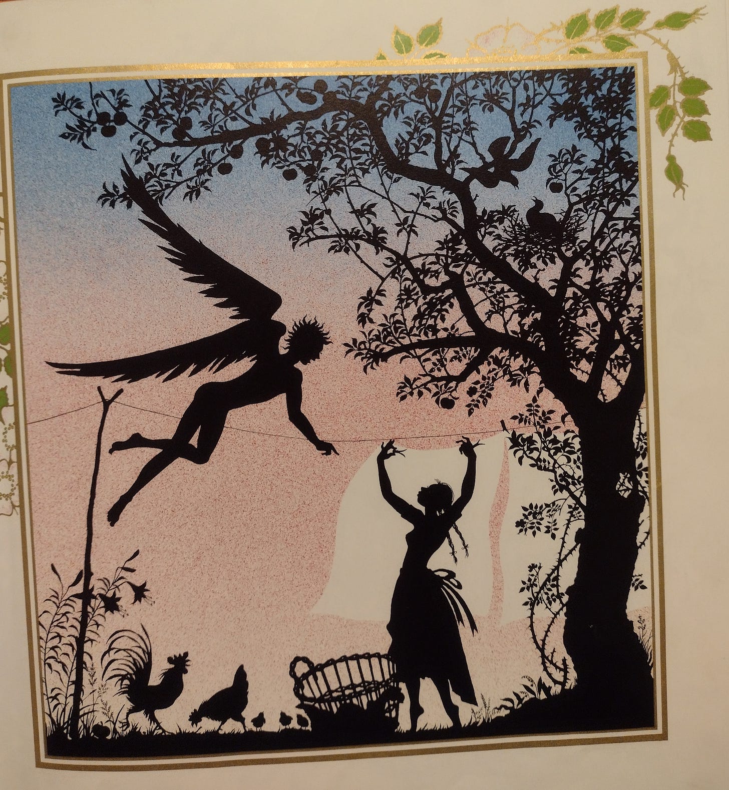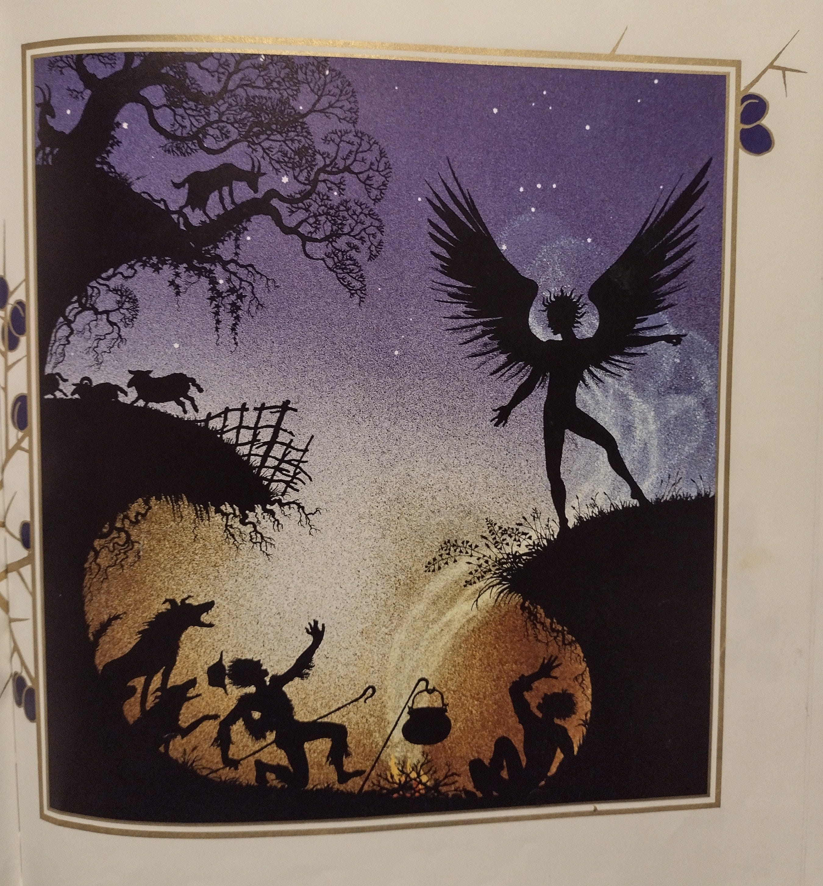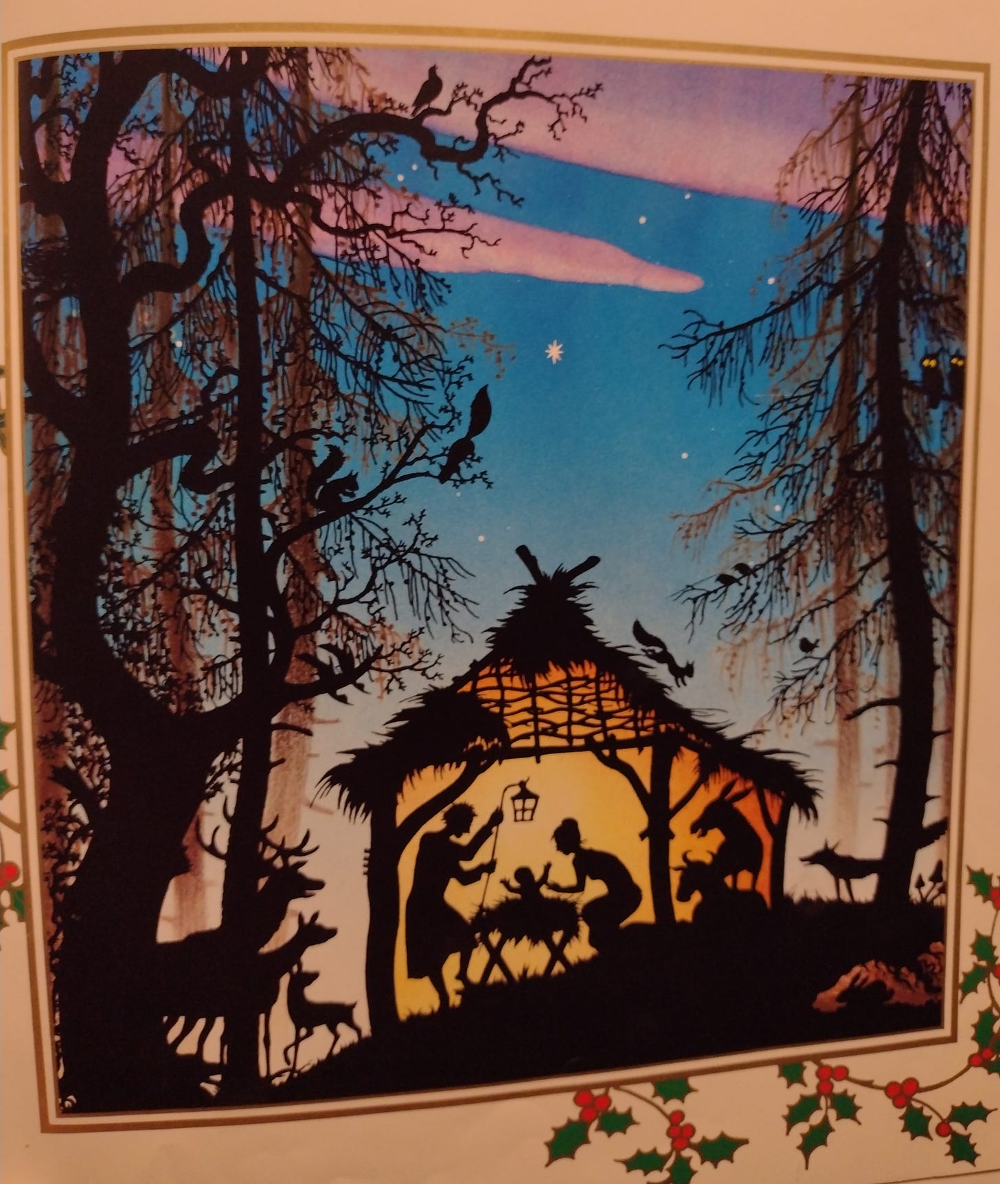 I found his book illustrating the Christmas story, and I love how he treats it like a fairytale. The people and objects are all depicted in shadowy black silhouette, yet are incredibly detailed.