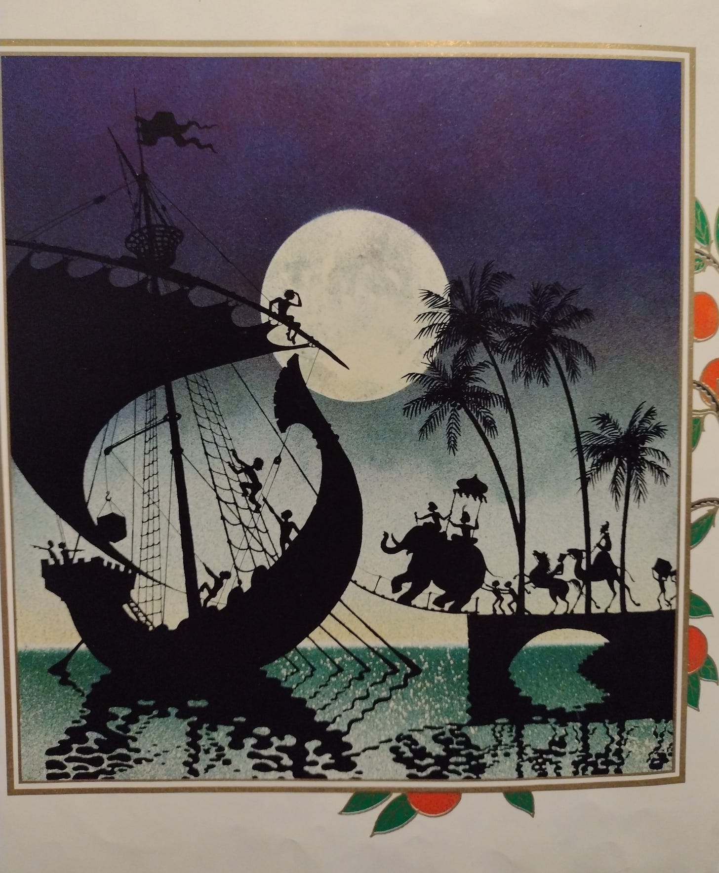 I just wanted to share some beautiful art I found buried in the stacks in our city library’s children’s section- Christmas by Jan Pienkowski.
